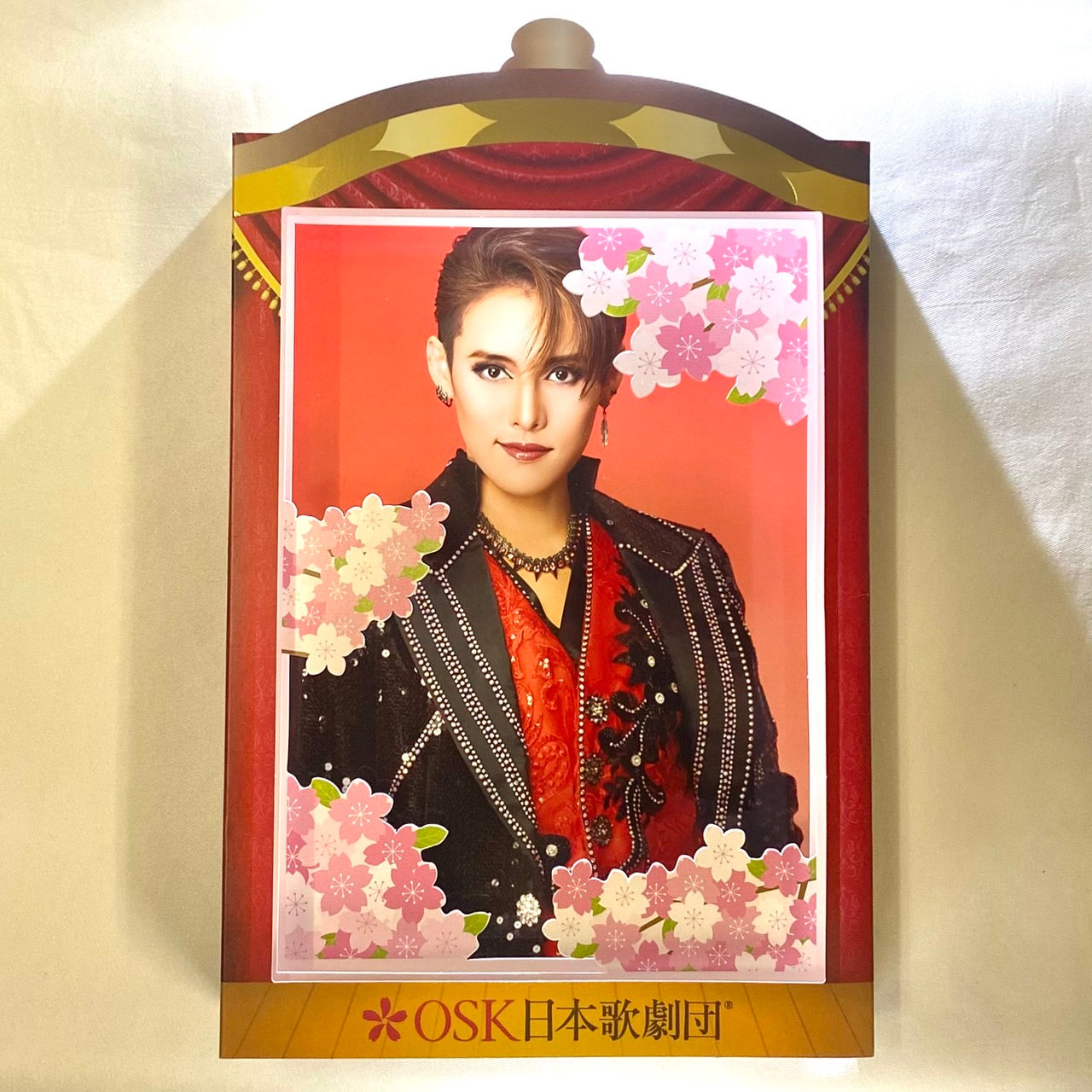 劇場で販売している縦型の舞台写真やスチール写真を入れて頂ける紙製のフォトスタンドです!お好みの写真を入れて是非お部屋に飾ってください🌸
