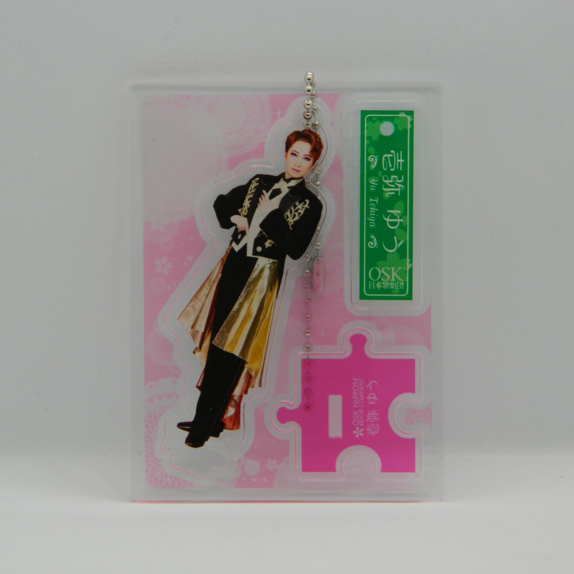 付属の台座に取り付ければアクリルスタンド、チェーンを使えば鞄などにつけれる2WEY仕様!